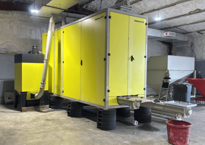 • Brand / Model: Hamos , model hamos KWS 2522-2 electrostatic separator • Type: Electrostatic Separator The machine is sold as a full functional line, including: * Inlet silo (capacity 100 cubic feet) * Bucket elevator and output transport screw * Separation module with 4 rotating drums * 3 Transport screws for 3 sorted output fractions: plastics, metals and mixed leftover. * Dust exhaust system