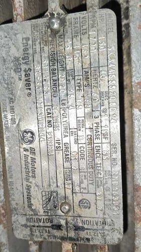 **Drive Motor:** 125/150 HP, 1800 RPM, 3-phase, 60 Hz, 440/550V (O.D.P. or TEFC)